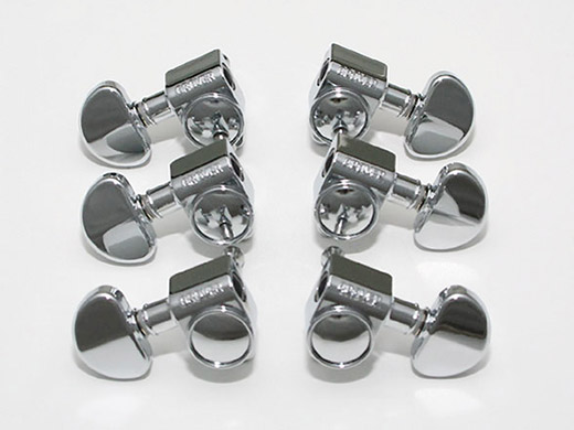 グローバーの102 シリーズはロートマチックタイプのギター用ペグで、3対3の配列を持つ大変ポピュラーな糸巻きですが、102-18は、通常のギヤ比14:1に対し18:1のギヤ比を持つギターペグです。
