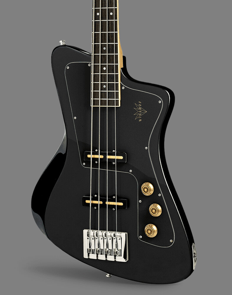 Wingman Bass Pure Blackは、アルダーを使用したオリジナル・シェイプのボディーに、サテン・フィニッシュのローステッド・メイプル・ネックをメタル・プレートを用いた4点留めでボルト-オン・ネック・ジョイントしています。