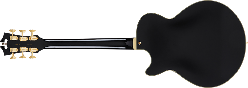 Excel SS Solid Blackは、オリジナルの15インチ(381mm)幅、1.75インチ(44.45mm)厚のシングル・カッタウェイ・シェイプにセンター・ブロック構造をもったセミホロー・ボディーのモデルです。