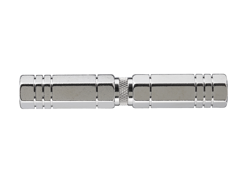 1/4"モノラル・フォーン・プラグ用ジョイント・プラグ。クローム・フィニッシュ。ケーブル同士の接続が可能。
