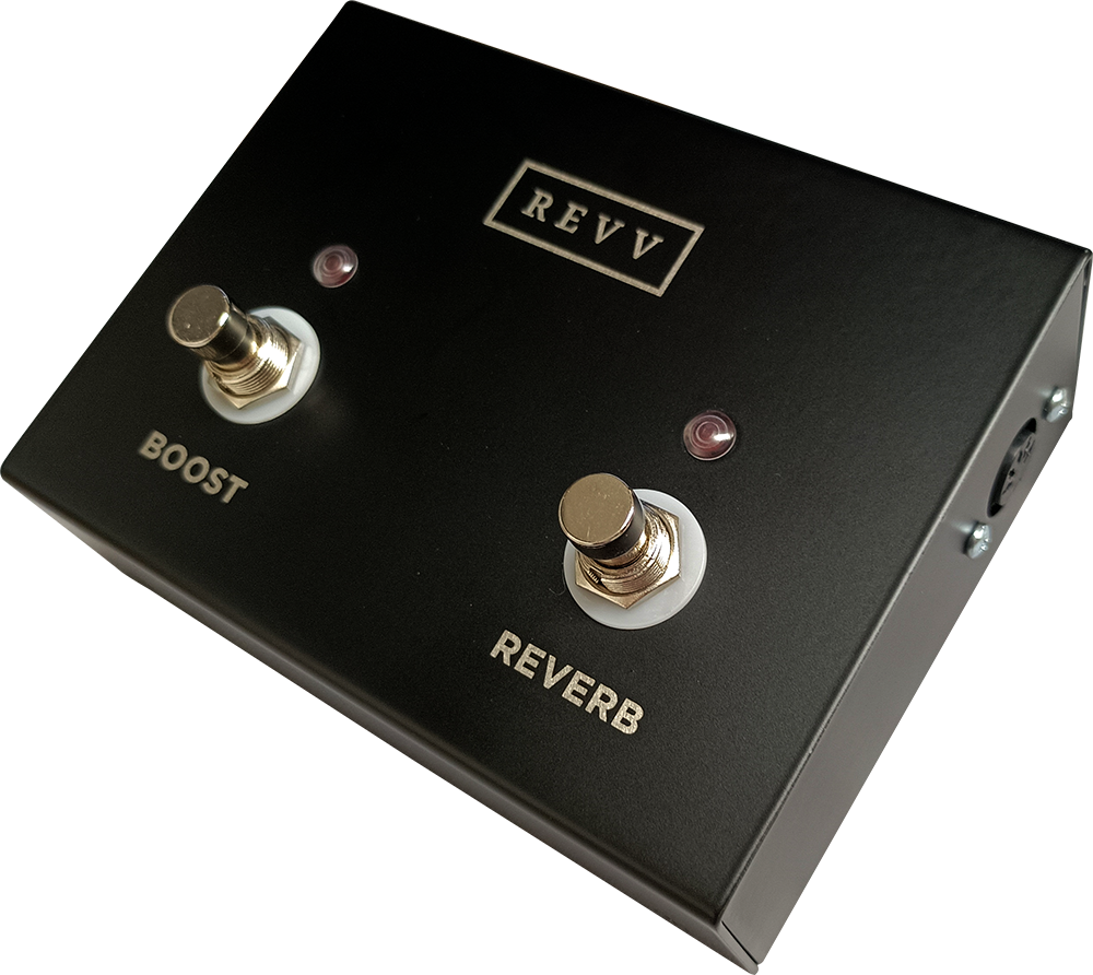 足元でブーストのオン/オフとリヴァーブのオン/オフ切り替えが可能な2ボタン・フットスイッチ付属です。